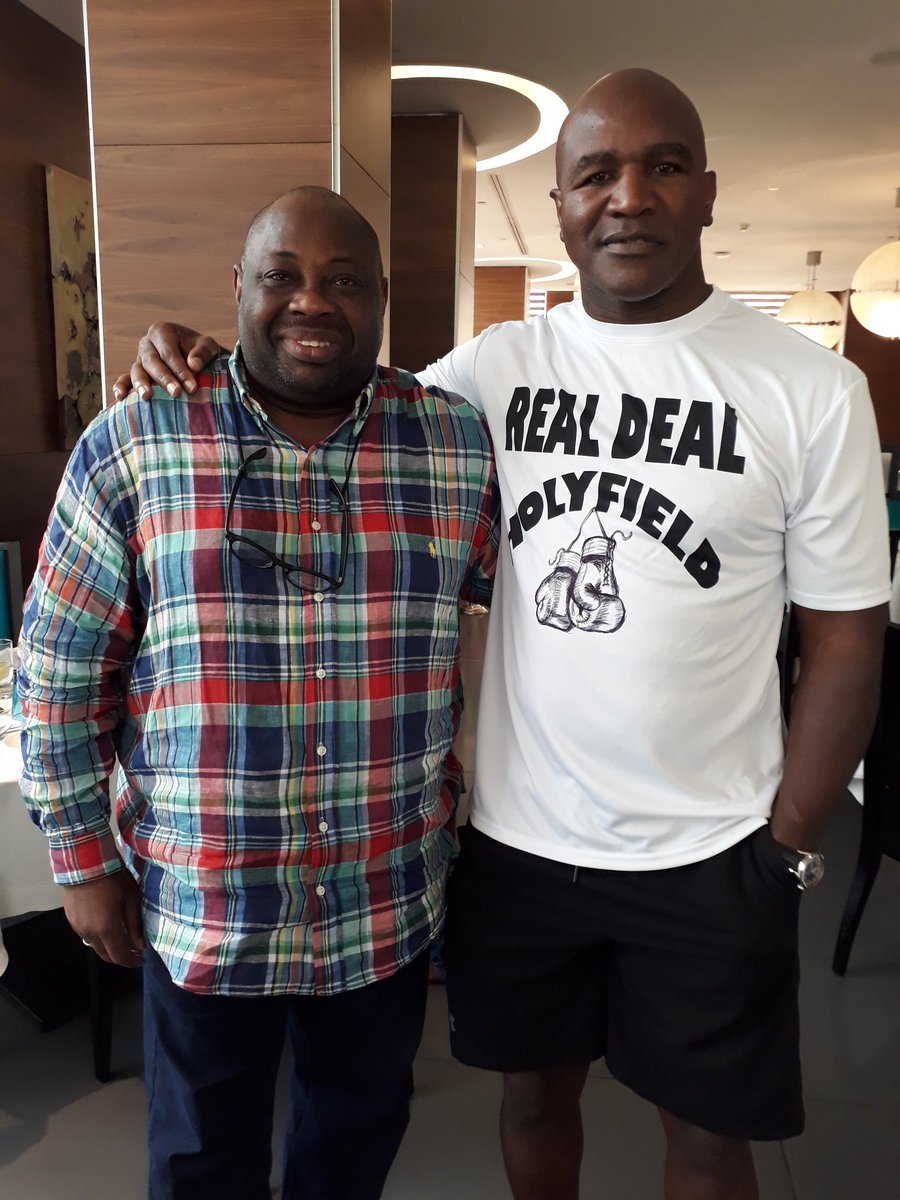 CEO of Ovation Magazine, Dele Momodu had breakfast in Lagos with former world heavyweight boxing champion Evander Holyfield.