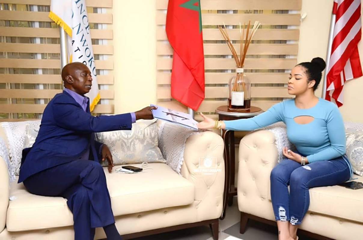 Nengi Rebecca Hampson has paid a courtesy visit to billionaire businessman, Ned Nwoko at his Malaria Foundation.